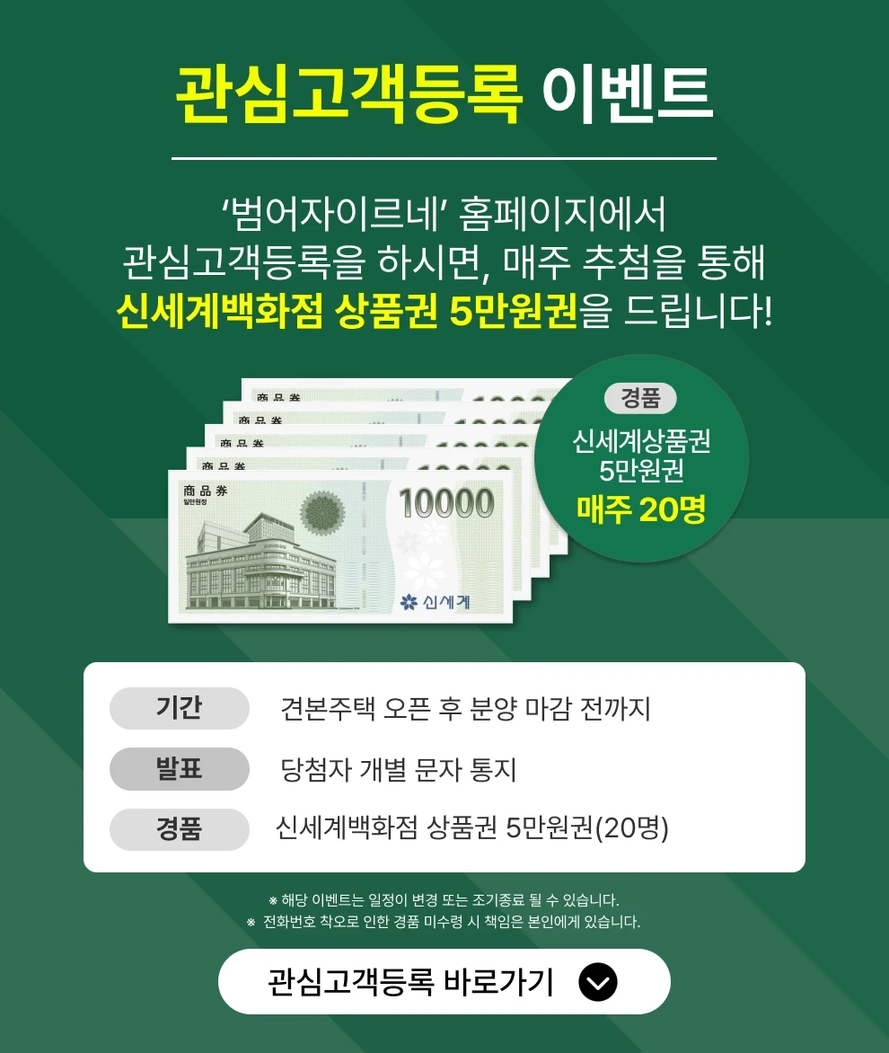 관심고객 등록 시 분양정보 및 모델하우스 위치를 휴대전화로 발송 및 안내드립니다. 모델하우스 방문은 예약제로 운영되며 전화 또는 관심고객등록을 통해 방문예약 부탁드리겠습니다.