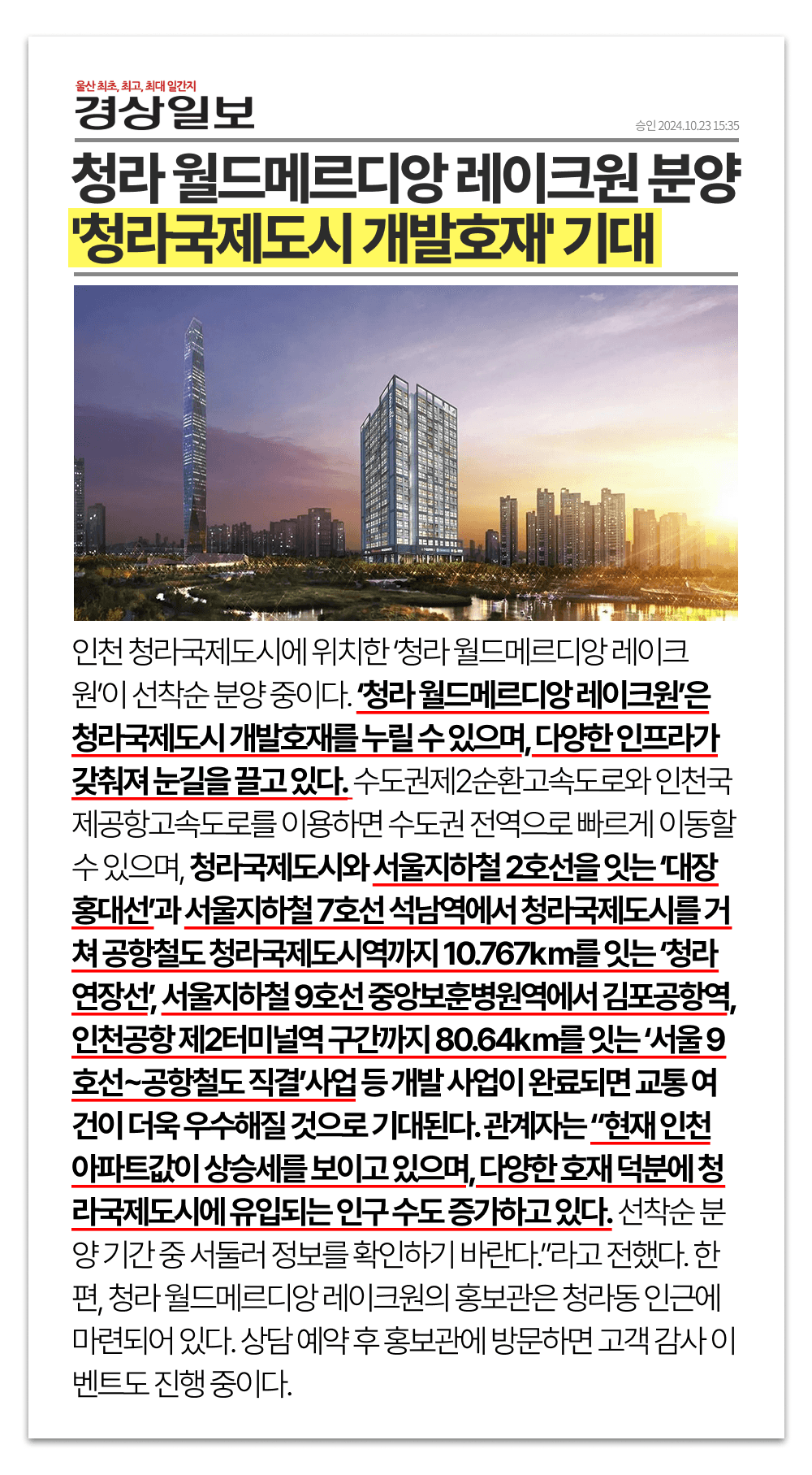 청라의 중심을 빌트인, 청라의 미래가 탁트인