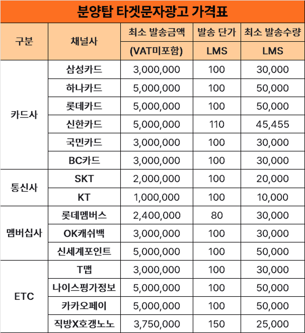 타겟문자광고 가격표
